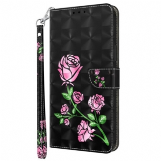 Læder Cover Xiaomi Redmi Note 13 4g Telefon Etui Lyserøde Blomster Med Rem