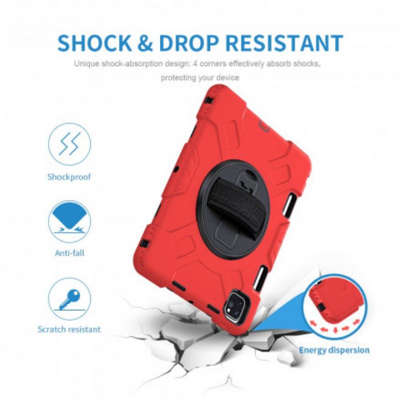 Et Ultra-Resistent Etui I Bumper-Stil Til Ipad Pro 11" (2022) (2021) (2020) (2018), Der Kommer Med Et Stativ, En Rem, En Skulderrem Og En Stylusholder.