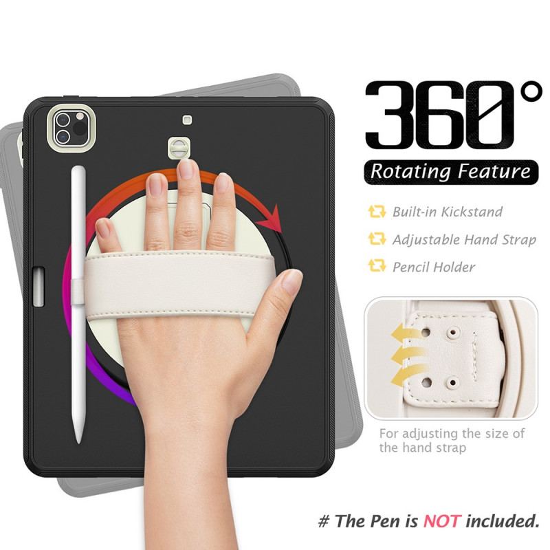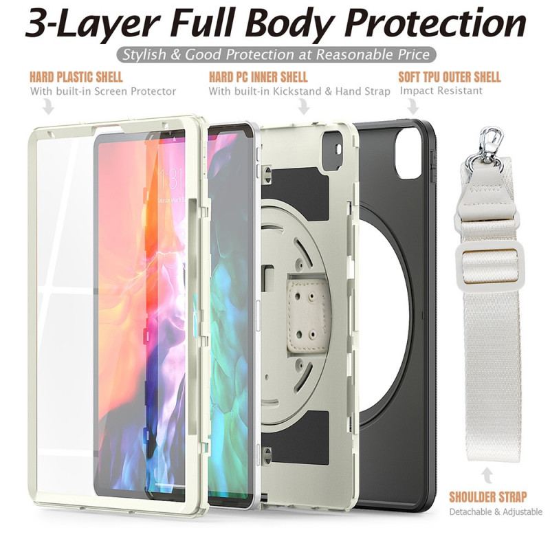 Din Ipad Pro 12.9" (2022) (2021) (2020) (2018) Er Perfekt Beskyttet Med Dette Multifunktionelle Etui Med Håndfri Støtte, En Rem Og En Skulderrem.