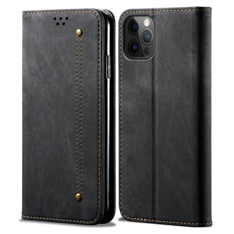 Cover iPhone 13 Pro Max Flip Cover Tekstur På Jeans I Imiteret Læder