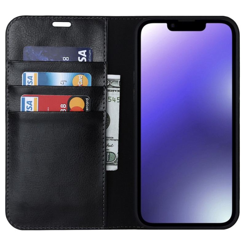 Cover iPhone 14 Flip Cover Ægte Læder