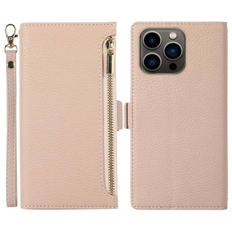 Beskyt Din Iphone 14 Pro Med Dette Flip-Cover I Litchi Imiteret Læder Udstyret Med En Frontlomme Og En Strop.