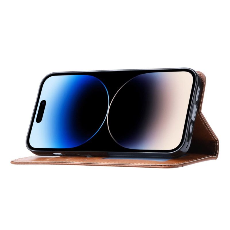 Sæt Din Iphone 15 Elegant Fast Med Dette Flip-Cover Kortsæt Udstyret Med En Frontlomme Og Som Fungerer Som En Pung.