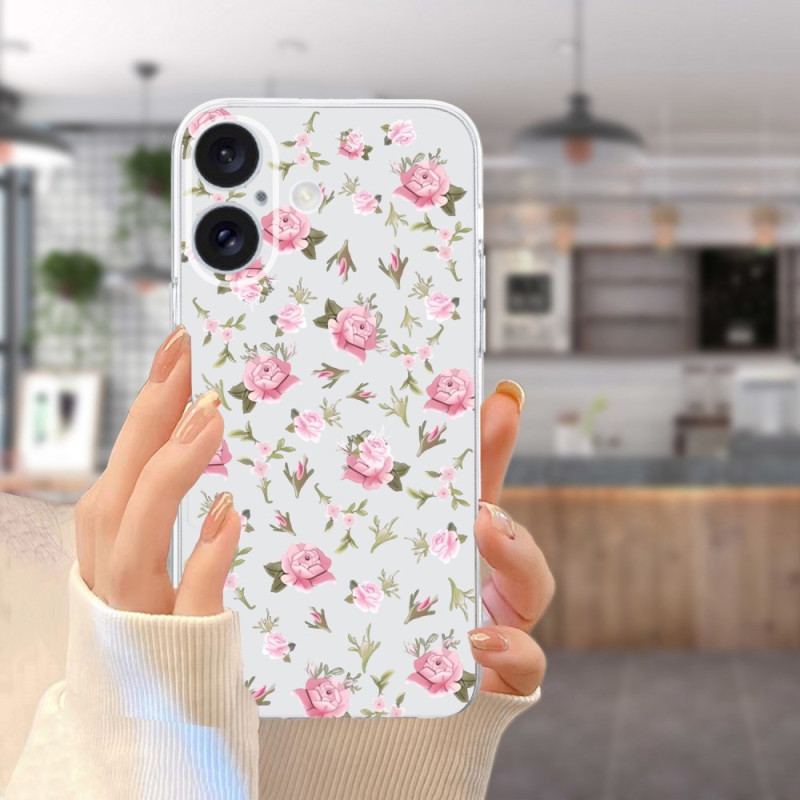 Cover iPhone 16 Transparent Edge Pink Flowers