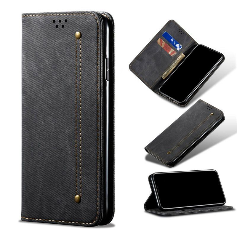 Cover OnePlus 8 Flip Cover Tekstur På Jeans I Imiteret Læder