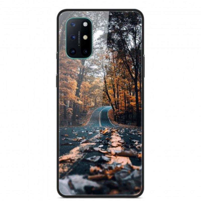 Din Oneplus 8T Ser Fantastisk Ud På Vejen Til Lykke, Når Den Er Beskyttet Med Dette Hærdet Glas Og Fleksible Silikoneetui.