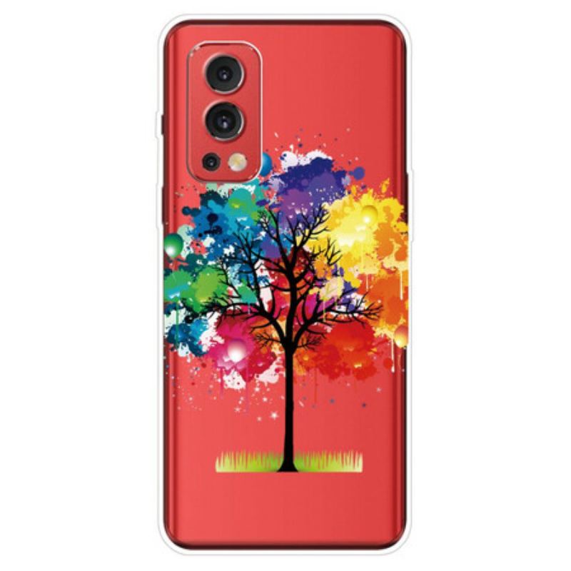 Watercolor Tree-Coveret, I Gennemsigtig Silikone, Sikrer Meget Godt Oneplus Nord 2 5G, Samtidig Med At Det Giver Nem Adgang Til Dens Porte Og Funktioner.