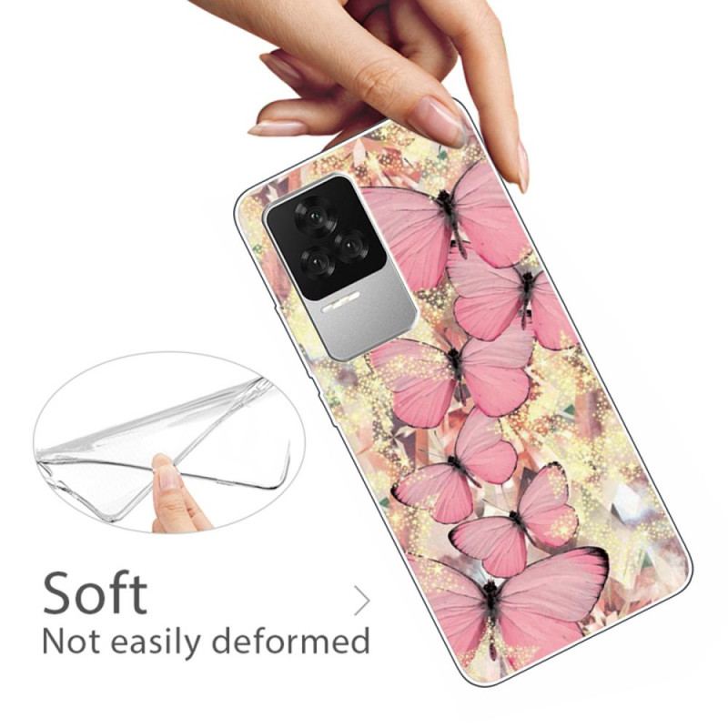 Denne Flyvning Af Sommerfugle Trykt På Et Avanceret Silikonetui Vil Perfekt Sikre Din Poco F4 5G.