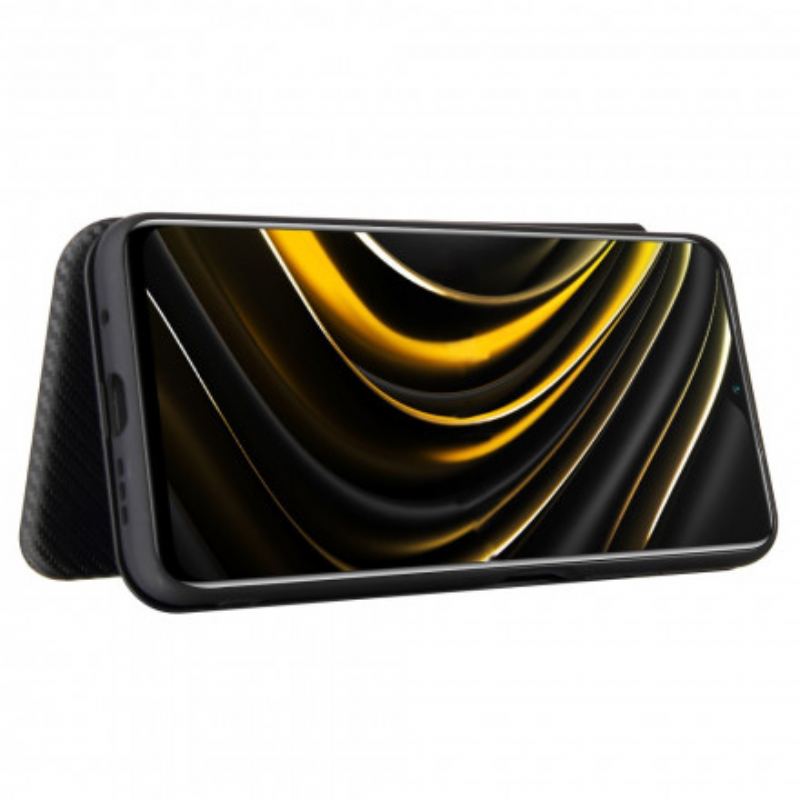 Cover Poco M3 Flip Cover Kulfiber Med Støttering