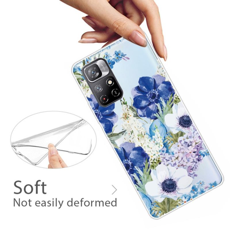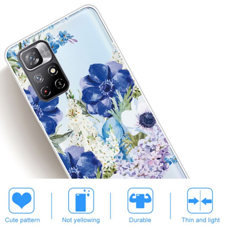 Det Gennemsigtige Watercolor Blue Flowers-Cover Sikrer Din Poco M4 Pro 5G Optimalt Og Elegant På Daglig Basis.