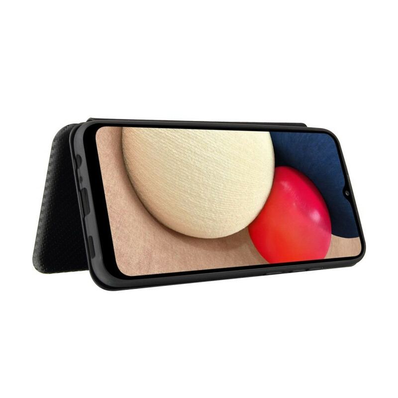 Din Samsung Galaxy A02S Er Helt Sikker Med Dette Flip-Cover I Kulfiberstil, Der Kombinerer Styrke Og Elegance.