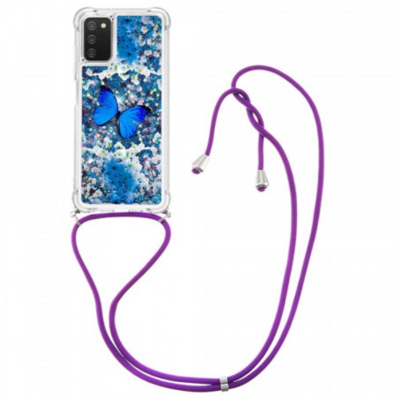 Cover Samsung Galaxy A03s Med Snor Pailletsommerfugle Med Snoretræk