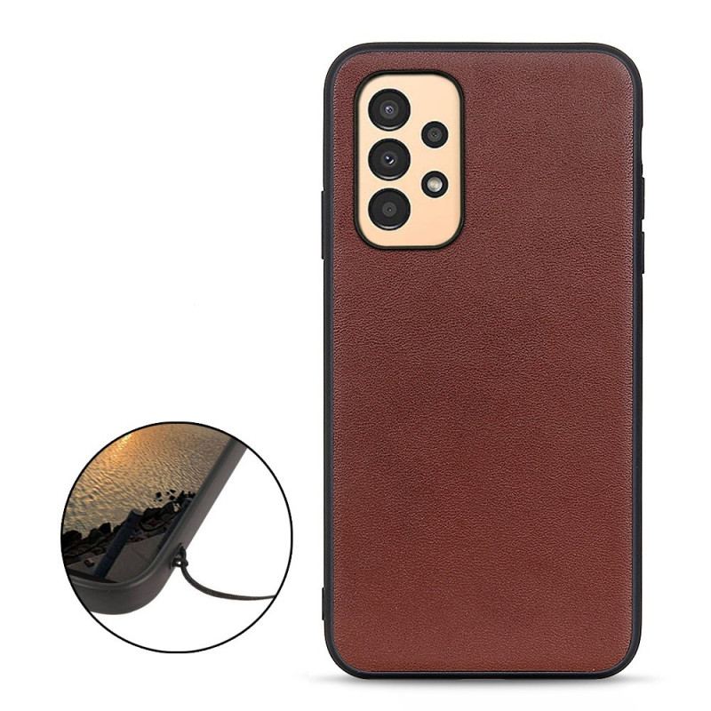 Giv Et Luksuriøst Touch Til Din Samsung Galaxy A13 Ved At Beskytte Den Med Dette Ægte Lædercover.