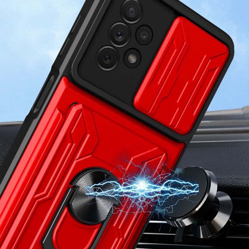 Beskyt Din Samsung Galaxy A13 Med Dette Etui Med En Kortholder, En Støttering Og En Linsebeskytter Med Lynlås.