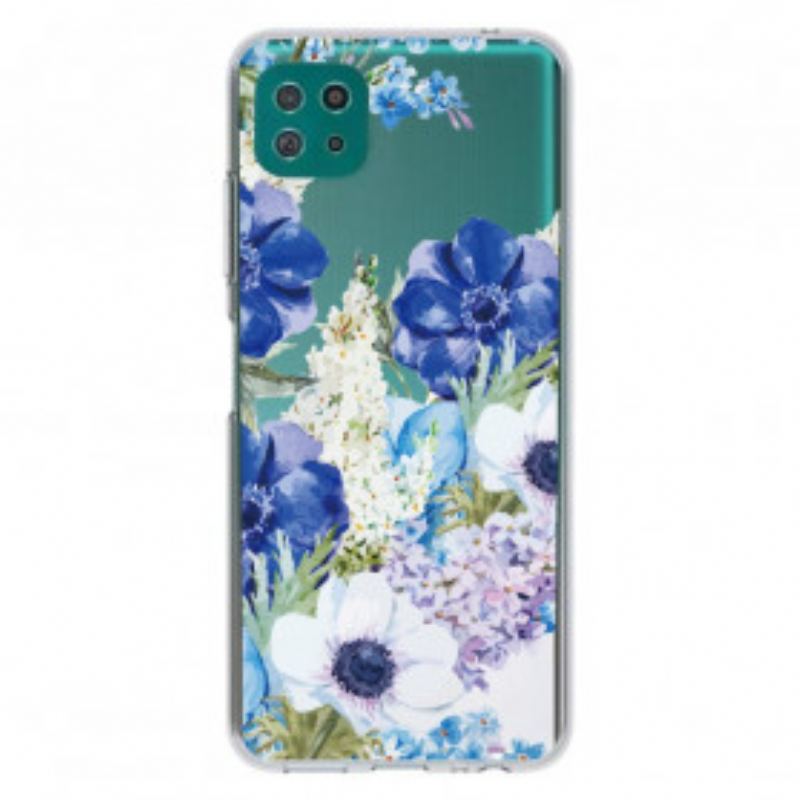 Det Gennemsigtige Watercolor Blue Flowers Cover Sikrer Optimalt Og Elegant Din Samsung Galaxy A22 5G På Daglig Basis.