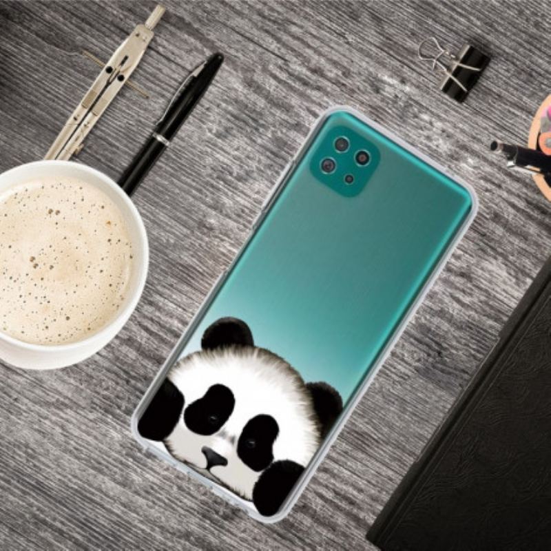 En Yndig Panda På Bagsiden Af Dit Gennemsigtige Etui Til Din Samsung Galaxy A22 5G: En Sjov Måde At Beskytte Den På!