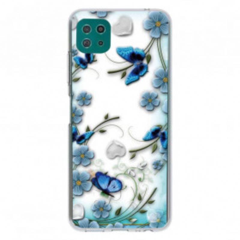 Din Samsung Galaxy A22 5G Forbliver Tynd Og Let, Når Den Er Sikret Med Dette Gennemsigtige Silikonetui I Retro Flowers And Butterflies.