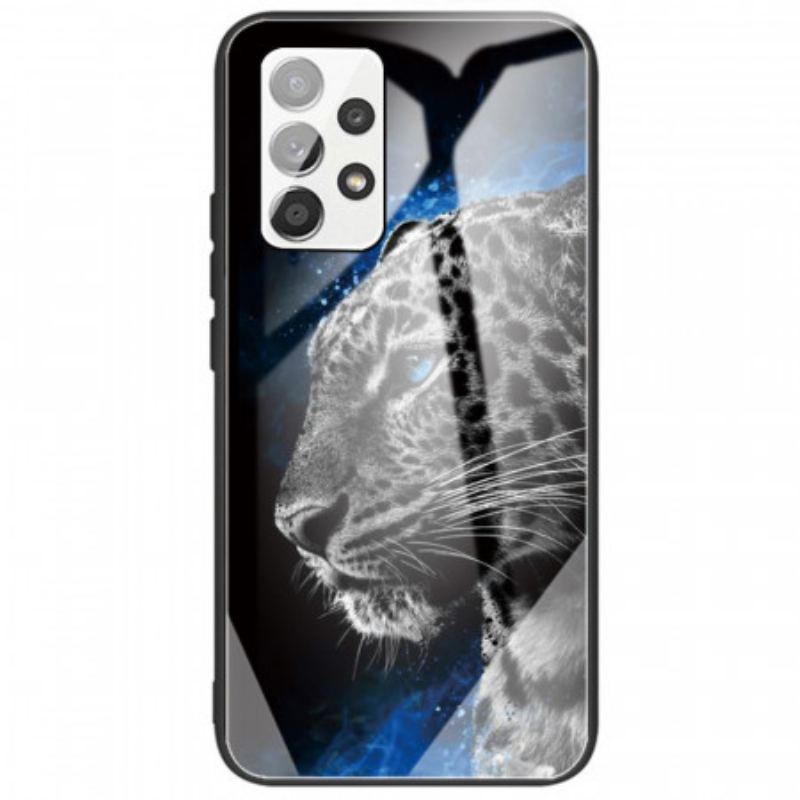 Din Samsung Galaxy A33 5G Er Meget Godt Sikret Med Denne Hærdede Glaskasse Dekoreret Med Et Storslået Katteansigt.