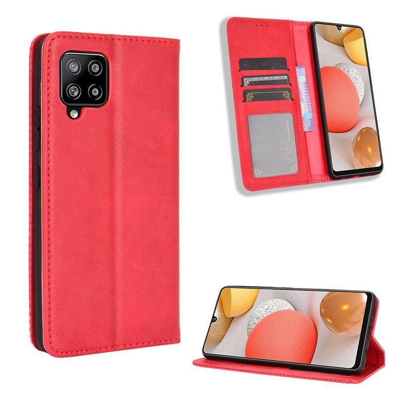 Din Samsung Galaxy A42 5G Er Utrolig Med Det Stilfulde Vintage Faux Læder Flip-Cover, Der Elegant Beskytter Din Telefon.