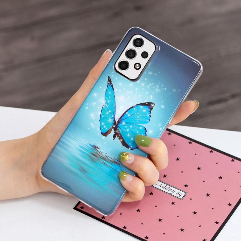 Dette Fluorescerende Etui Med Sin Blå Sommerfugl Vil Give Optimal Og Personlig Beskyttelse Til Din Samsung Galaxy A53 5G.