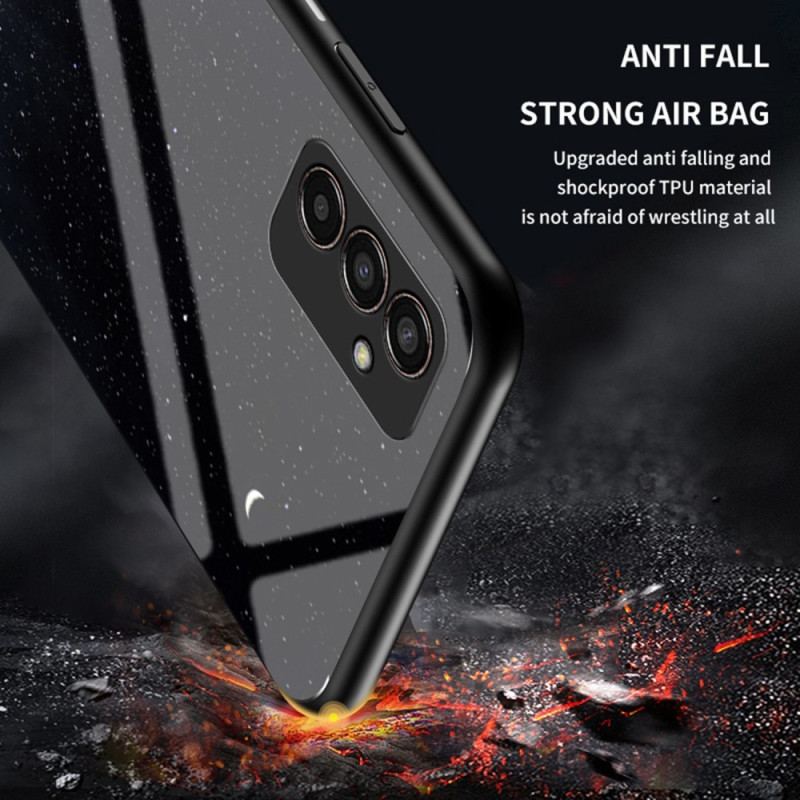 Din Samsung Galaxy M13 Er Meget Godt Beskyttet Med Dette Sky-Cover, Hvis Bagside Er Lavet Af Hærdet Glas Og Silikonekanter.