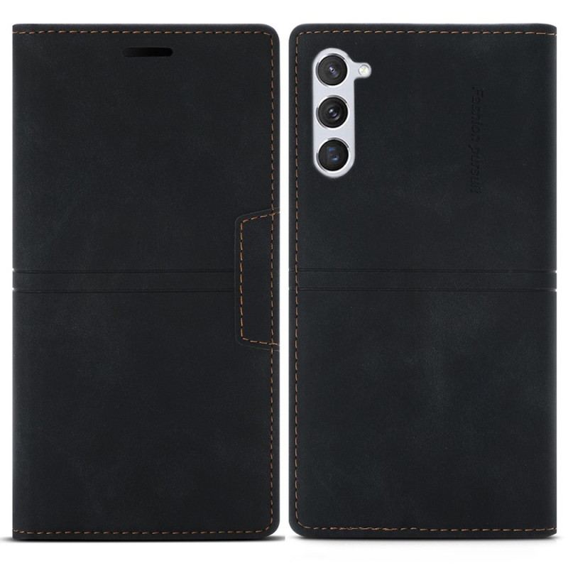 Din Samsung Galaxy S23 5G Er Meget Godt Beskyttet Med Dette Flipcover I Læderstil Med Synlige Sømme Og Magnetisk Lås.