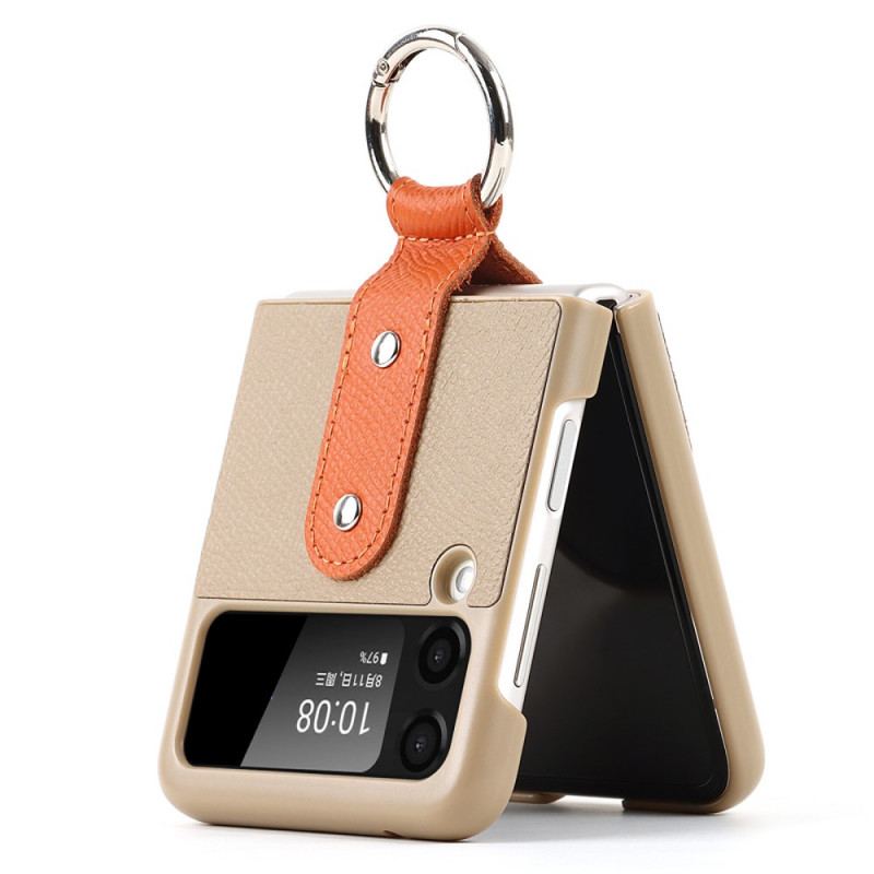 Det Ægte Lædercover, Med Støttering Og Justerbar Ledning Hen Over Skulderen, Giver Din Samsung Galaxy Z Flip 3 5G En Unik Karakter.