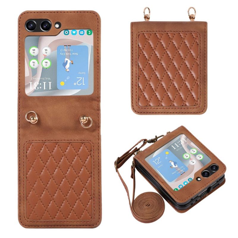 Giv Et Unikt Touch Til Din Samsung Galaxy Z Flip 5 Ved At Beskytte Den Med Dette Quiltede Etui, Der Kommer Med En Skulderrem.