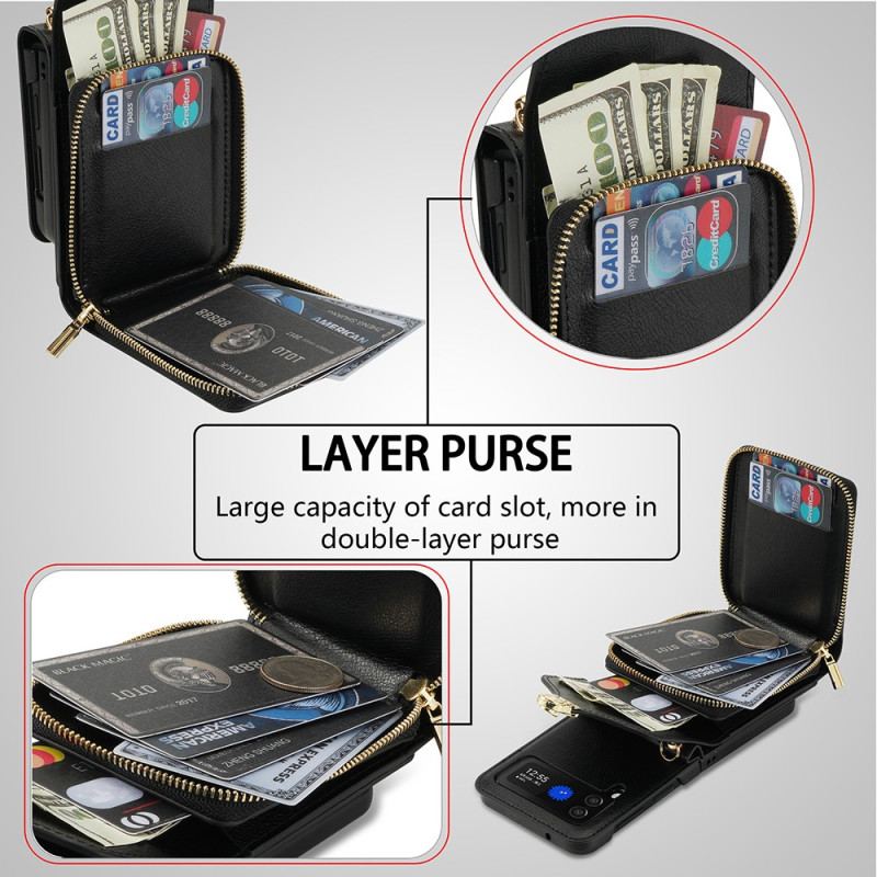 Her Er Et Meget Smart Etui Til Samsung Galaxy Z Flip 5. Der Fungerer Som En Pung Og Kommer Med En Skulderrem.