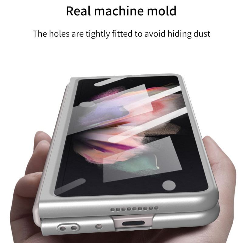 Din Samsung Galaxy Z Fold 3 5G Er Meget Godt Beskyttet Med Dette Teksturerede Etui Fra Gkk, Udstyret Med En Skærmbeskytter Og En Støtte.