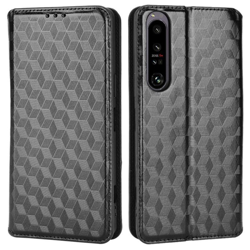 Et Enestående Ultratyndt Flip-Cover I Læderstil, Dekoreret Med 3D-Terninger, Til At Sikre Hele Sony Xperia 1 Iv.