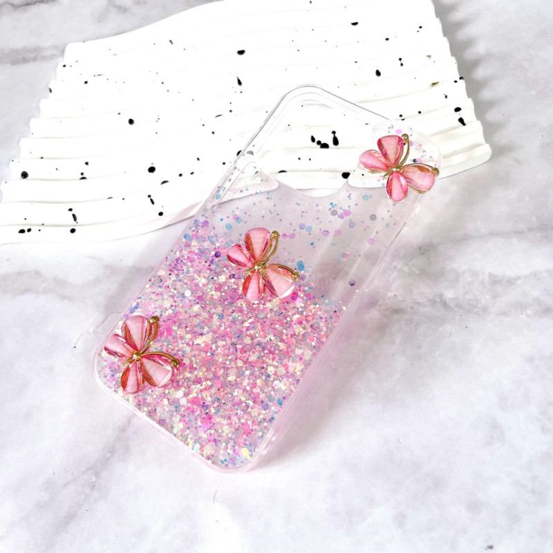 - Denne Telefon Etuiet Har Epoxydekor Og Tre Smukt Designede Sommerfugle, Der Tilføjer Et Strejf Af Elegance Og Charme Til Din Enhed