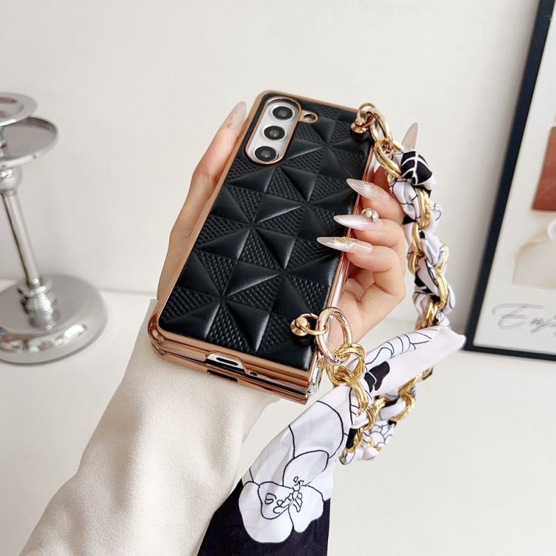 Opdag Vores Cover Til Samsung Galaxy Z Fold 6 5G, Dekoreret Med En Quiltet Tekstur Og Ledsaget Af En Båndkæde.