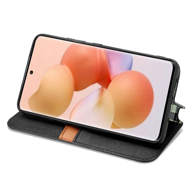 Din Xiaomi 12 / 12X Er Fuldstændig Sikker Med Dette Flip-Cover Stil Etui Med Et Imiteret Læder Design Og Diamant Tekstur.