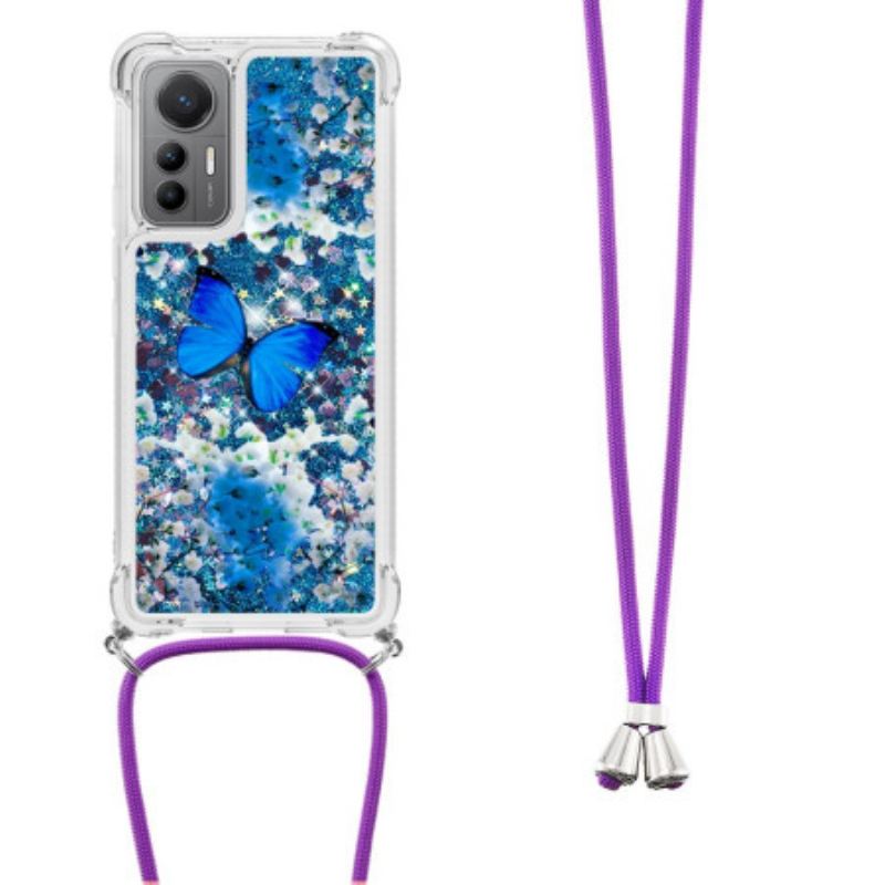 Cover Xiaomi 12 Lite Med Snor Pailletsommerfugle Med Snoretræk