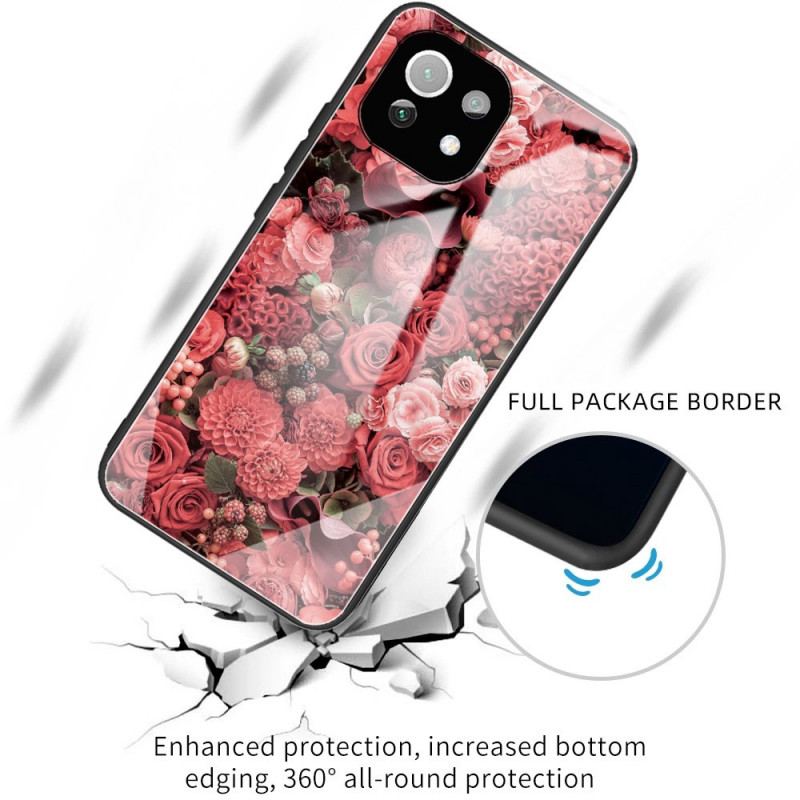 Cover Xiaomi Mi 11 Lite 4G / 5G / 5G NE Rose Blomster Hærdet Glas