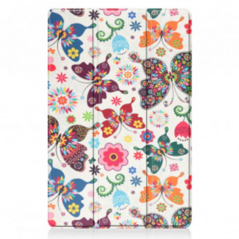 Et Smart Etui Med Penneholder Designet Til Xiaomi Pad 5 Med Et Design Fyldt Med Vintage Sommerfugle Og Blomster.