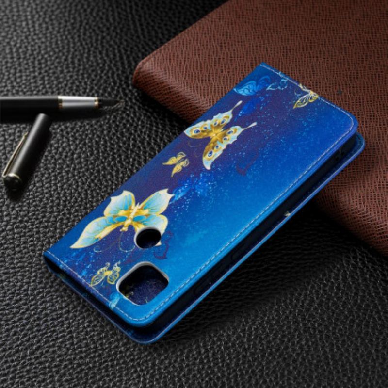 Cover Xiaomi Redmi 9C Flip Cover Farverige Sommerfugle