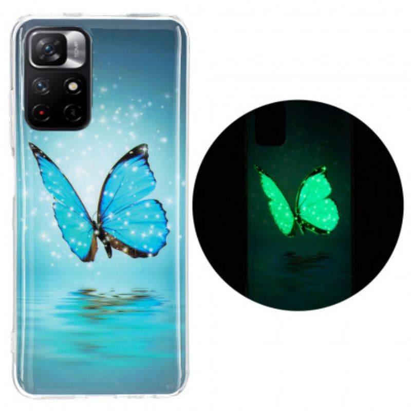 Dette Fluorescerende Etui Med Dens Blå Sommerfugl Vil Give Optimal Og Personlig Beskyttelse Til Din Xiaomi Redmi Note 11 Pro Plus 5G.