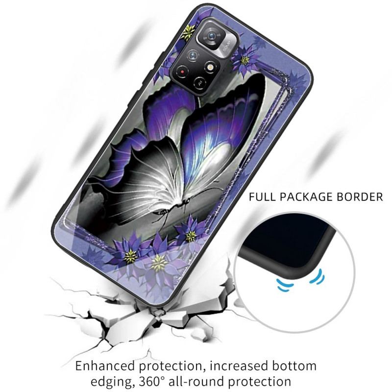 Beskyt Din Xiaomi Redmi Note 11 Pro Plus 5G Med Dette Hærdede Glas Og Silikone Etui Dekoreret Med En Lilla Sommerfugl.