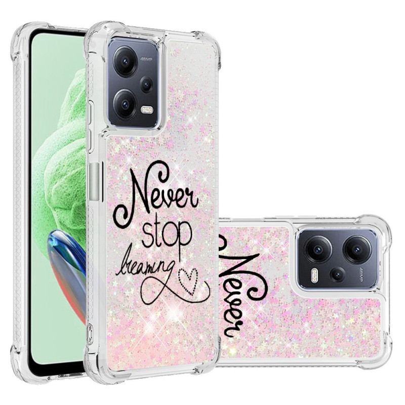 Din Xiaomi Redmi Note 12 5G/Poco X5 5G Er En Drøm, Der Går I Opfyldelse Med Dette Never Stop Dreaming-Glitteretui.