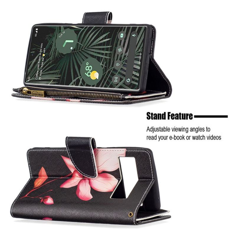 Flip Cover Google Pixel 6 Pro Blomsterlomme Med Lynlås