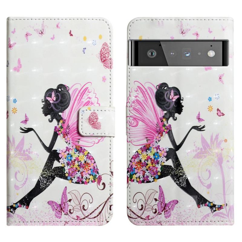 Magic Fairy-Coveret Sikrer Slankt Din Google Pixel 6 Pro Omkring En Silikoneskal, Mens Den Fungerer Som Pung Og Håndfrit Stativ.