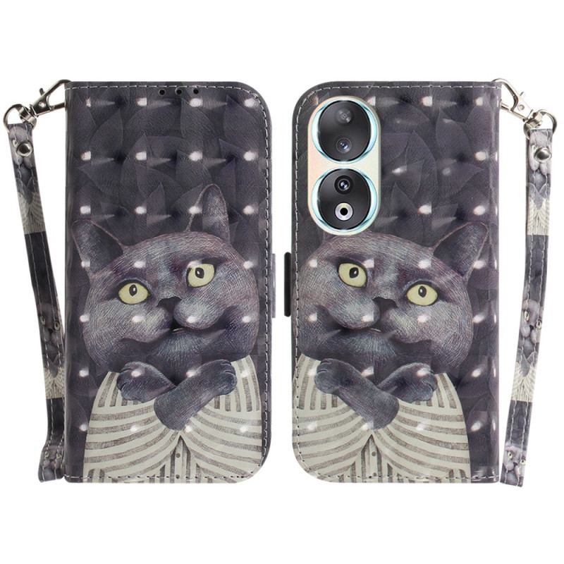 Flip Cover Honor 90 Med Snor Grafisk Kat Med Snor