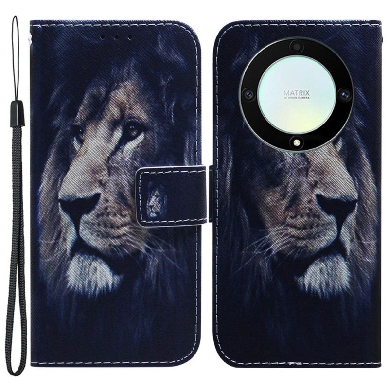 Flip Cover Honor Magic 5 Lite Med Snor Drømmende Løve Med Rem