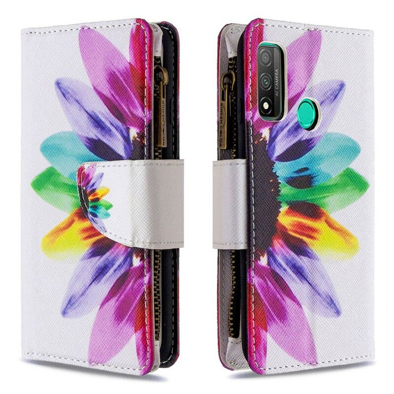 Flip Cover Huawei P Smart 2020 Blomsterlomme Med Lynlås