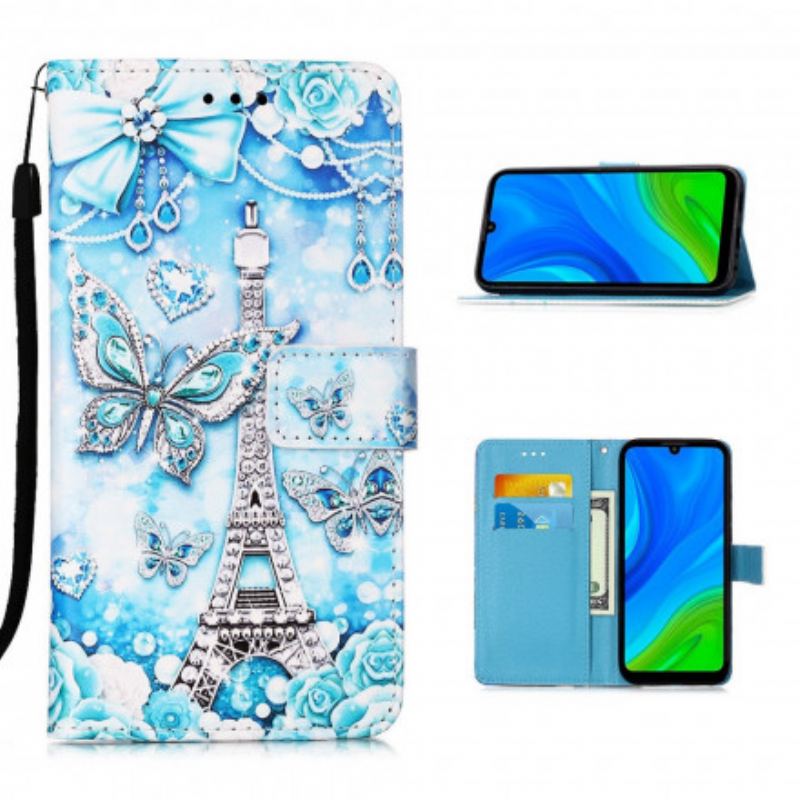 Flip Cover Huawei P Smart 2020 Med Snor Eiffeltårnets Sommerfuglestrop