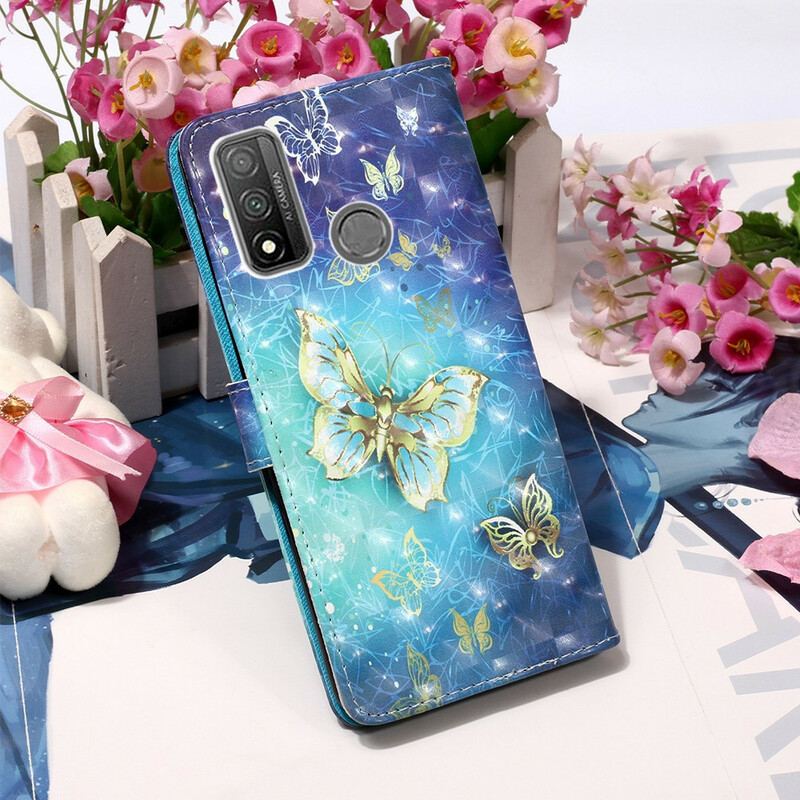 Flip Cover Huawei P Smart 2020 Med Snor Gyldne Sommerfugle Med Rem