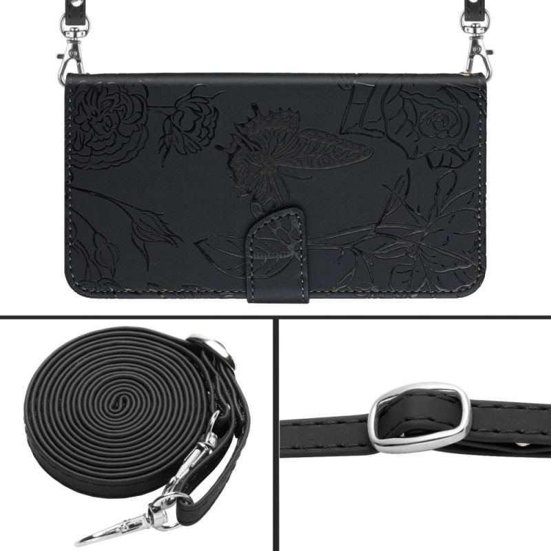 Huawei P60 Pro Er Helt Sikker Med Et Butterflies-Cover, Der Kommer Med En Skulderrem.
