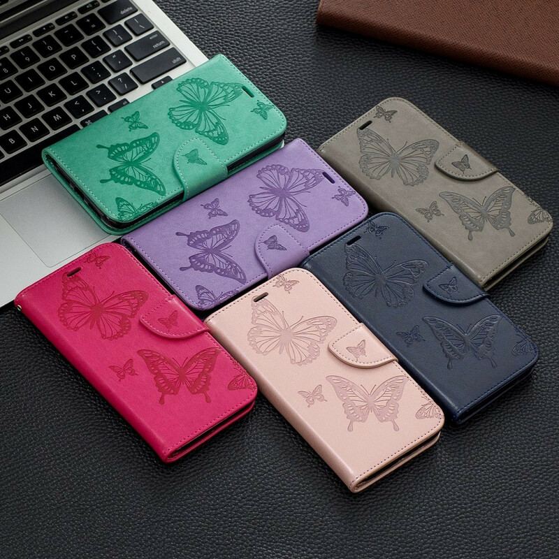 Det Printede Butterflies Imiteret Lædercover Kommer Med En Praktisk Rem Til At Bære Iphone 11.